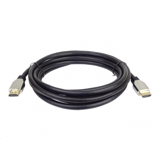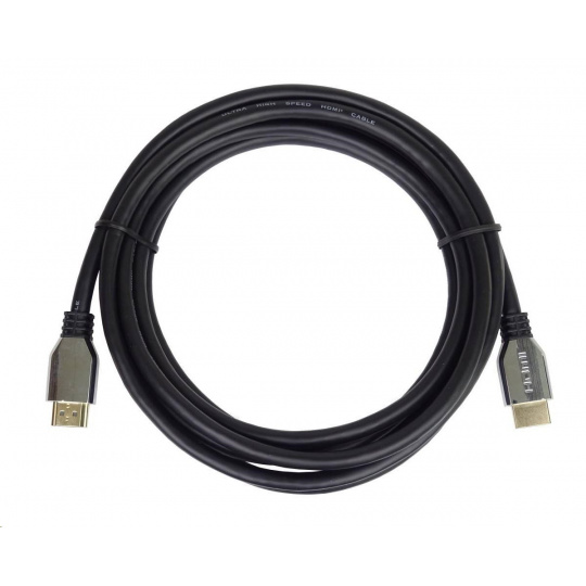 Špičkové rozhranie ULTRA HDMI 2.1 prepojovací kábel pre najvyššie rozlíšenie 8K@60Hz a 4K@120Hz s kovovými konektormi zo zinkovej zliatiny, flexibilný kábel pre najnáročnejšie aplikácie. Kábel je viacnásobne tienený, dokáže prenášať digitálny zvuk a video a podporuje ochranu digitálneho obsahu HDCP. Kábel má integrovaný vysokorýchlostný prenos Ethernetu.