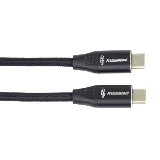 PREMIUMCORD Kabel USB-C M/M, 240W 480Mbps černý bavlněný oplet, 1,5m
