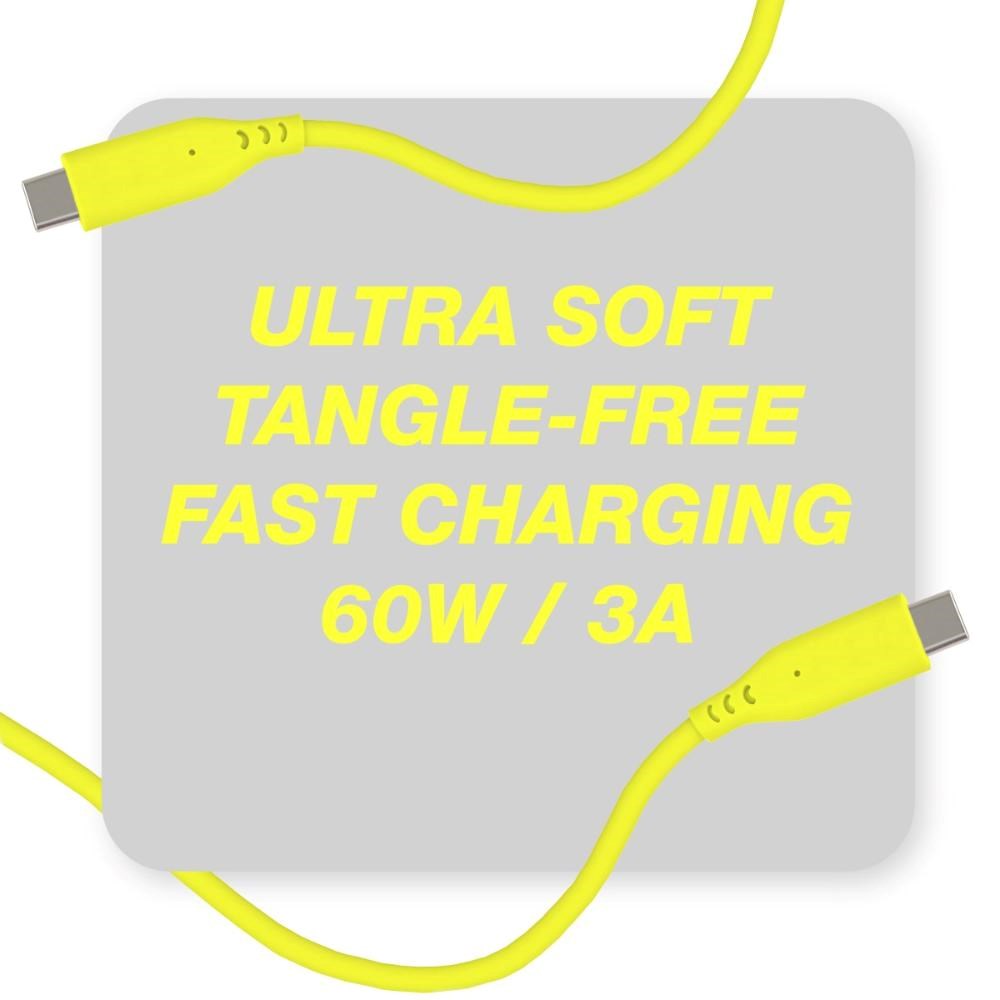 PREMIUMCORD Kabel USB-C na USB-C, 60W, 480Mbps, silikonový, žlutý, 1,5m