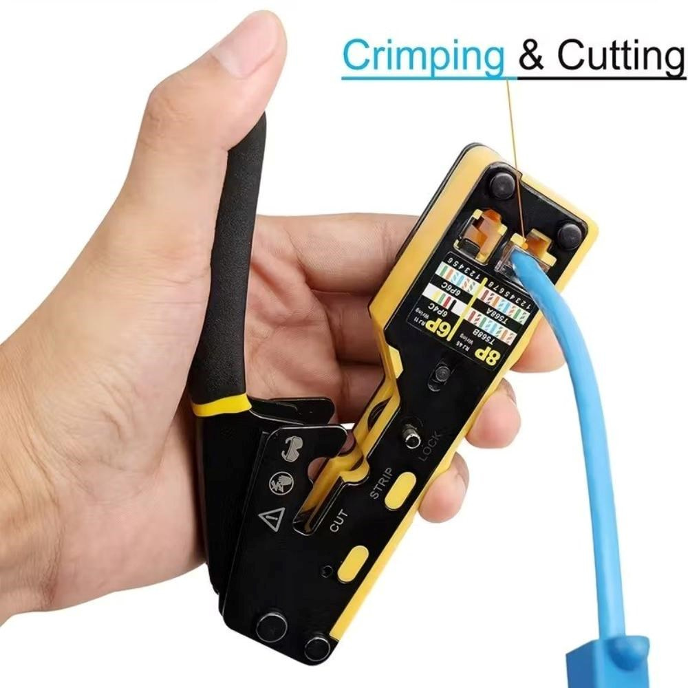 PremiumCord krimpovacie kliešte na priechodné RJ konektory sú spoľahlivým univerzálnym nástrojom na prácu s väčšinou bežných modulárnych zástrčiek radu RJ — vrátane RJ11, RJ12, RJ14, RJ45 a ďalších typov. Vďaka konštrukcii 3 v 1 umožňujú jednoduché krimpovanie, strihanie aj odizolovanie káblov, čo výrazne urýchľuje a upresňuje prácu pri výrobe či opravách sieťových a telefónnych vedení.