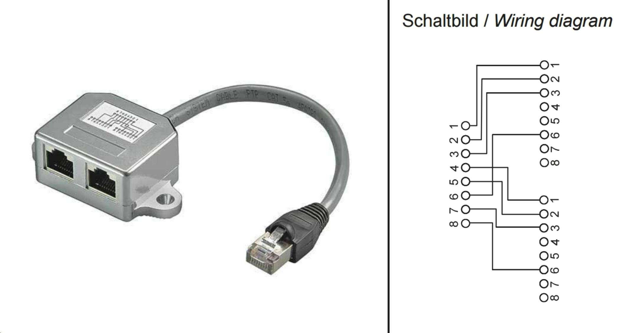 - adaptér na pripojenie a rozdelenie dvoch pripojení do počítačovej siete cez jeden TP kábel