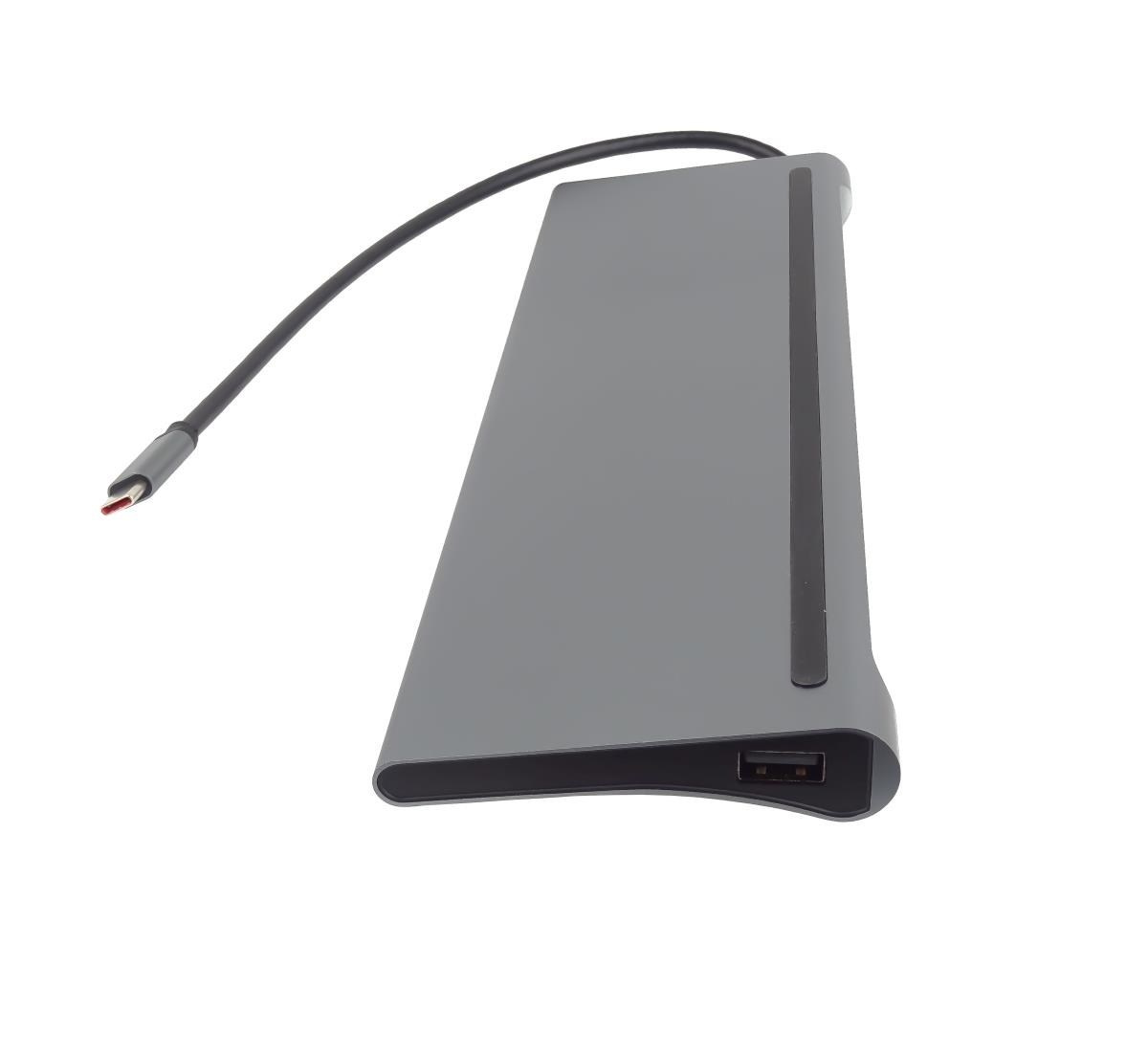 PREMIUMCORD Dokovací stanice USB-C 10v1, 1xHDMI, 1xVGA, 2xUSB-C, 3xUSB, 1xRJ45, čtečka SD karet, šedá