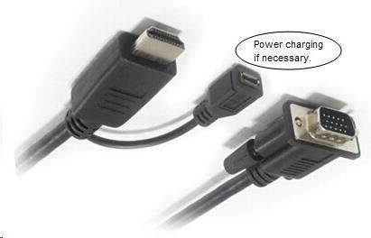 Káblový prevodník HDMI na VGA s napájacím konektorom micro USB - čierny - Adaptér je určený pre počítače alebo notebooky s výstupom HDMI na prevod obrazu na analógový VGA. - Vstup: konektor HDMI - samec (kompatibilný s HDMI 1.4 a DVI 1.0 ) - Výstup: konektor VGA DB15 - samica (kompatibilný so špecifikáciou VESA VSIS v1r2) - Konvertor umožňuje pripojiť zariadenie s výstupným signálom HDMI k zobrazovaciemu zariadeniu alebo televízoru, monitoru s konektorom VGA - Podporuje: HDCP1.0/1.1/1.2; HDMI1.1/1.2/1.3; - Technológia Plug and Play; - Podporuje rozlíšenie: 480i/576i / 480p / 576p / 720p/1080i / 1080p / 60Hz; Výstup VGA: 480i/576i / 480p / 576p / 720p/1080i / 1080p / 60Hz - Podporuje FULL HD 1080P (1920*1080P@60Hz) - Maximálne rozlíšenie 1920*1200@60Hz. - Nízka spotreba energie: 130 mA. - Napájanie pomocou HDMI (5 V). - Ak napájanie z portu HDMI nestačí, v prípade potreby použite napájanie adaptéra pomocou kábla USB s konektorom micro USB, ktorý sa zasunie do konektora micro USB tohto prevodníka (napr.ku2m05f) Ďalšou možnosťou dodatočného napájania je použitie napájacieho adaptéra 230V - 5V/1A s konektorom micro USB - dĺžka 2 m - farba: čierna..