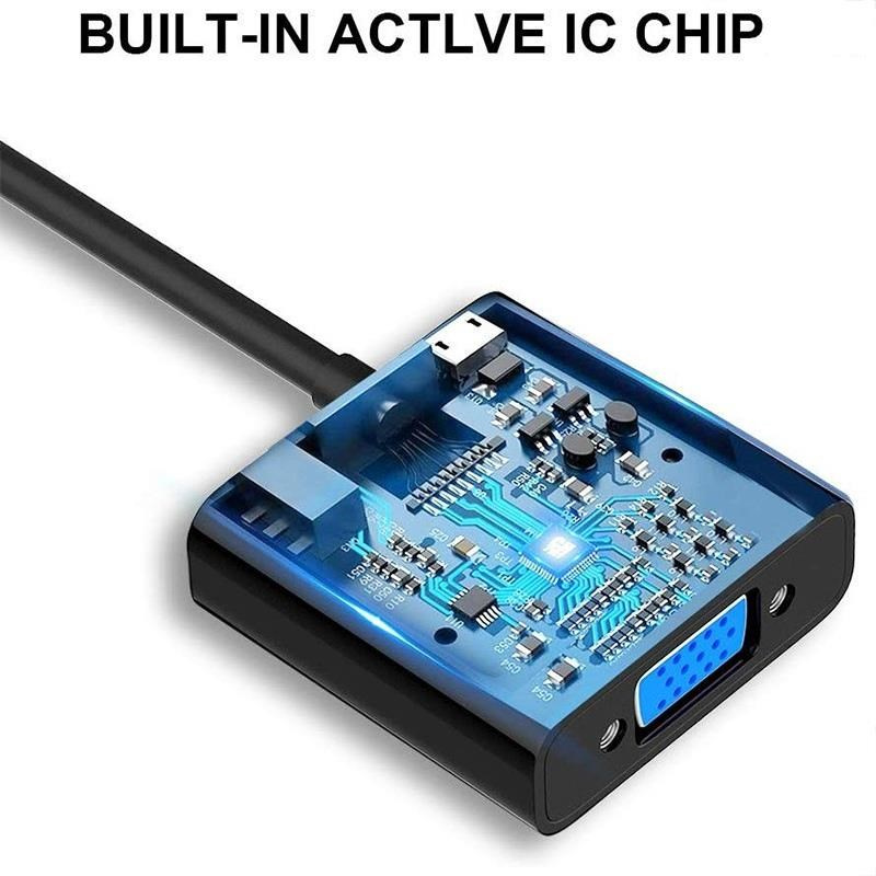 - Prevádzač integrovaný v kábli 20cm umožňuje prepojiť zariadenie s výstupom HDMI s staršími monitorami alebo TV s VGA konektorom. Podporuje rozlíšenie FULL HD 1080P ( 1920x1080@60Hz ), nie je potrebné dodatočné napájanie.