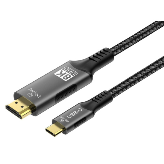 PremiumCord USB-C na HDMI kábel 2m rozlíšenie obrazu 8K@60Hz,4K@144Hz Hliníkový
