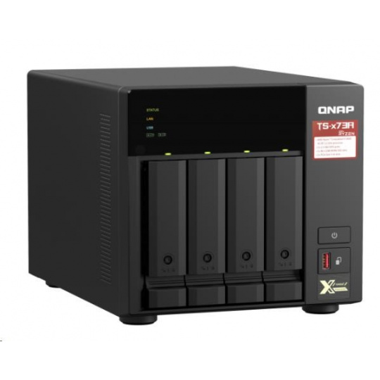 Disponuje štvorjadrovým procesorom AMD Ryzen™ rady V1000 V1500B, ktorý poskytuje vysoký výkon systému vďaka až štyrom jadrám / 8 vláknam a Turbo Core až 2,2 GHz. Zariadenie TS-473A má dva porty 2,5GbE RJ45 a dva sloty PCIe Gen 3, aby ste mohli flexibilne nasadiť siete 5GbE/10GbE. Dva sloty M.2 NVMe SSD pre technológiu Qtier a SSD Cache umožňujú neustálu optimalizáciu úložiska. Zariadenie TS-473A podporuje systémy QTS a QuTS hero, čo používateľom umožňuje pružne prepínať operačný systém podľa ich požiadaviek.