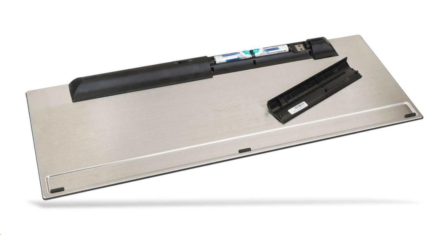 - Obsah balenia: Viacrežimová bezdrôtová klávesnica, nano prijímač USB, 2 alkalické batérie (AA) (sú súčasťou balenia), stručná príručka
