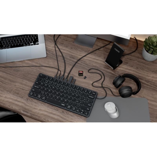 RAPOO Klávesnice UCK-6001 s 8v1 USB-C Hub, Drátová USB-C, CZ/SK, černá