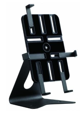 Stojan na 7-11" tablety v horizontálnej a vertikálnej polohe na stole. Plynule nastaviteľný sklon od +90 do -15° plus otočenie o 360°, ideálne na rýchlu zmenu horizontálnej a vertikálnej polohy, upevnenie tabletu na štyroch stranách, kovová konštrukcia, čierna farba...