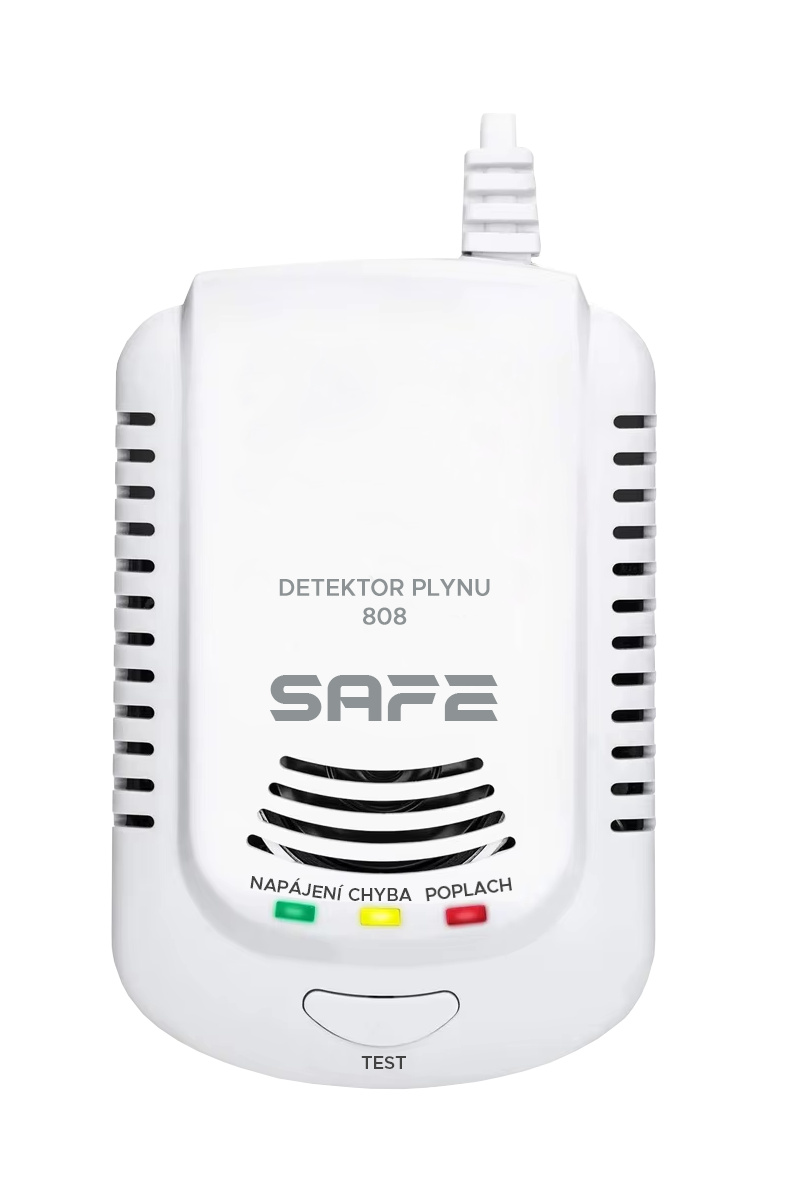 Detektor hořlavých a výbušných plynů v ekonomickém provedení. Přístroj byl navržen pro detekci a včasné varování před výskytem hořlavých a výbušných plynů (zemní plyn, metan, propan, butan) pomocí nejnovější technologií polovodičového senzoru, který nevyžaduje další kalibrace. Hlásič plynu SAFE - 808 se ideálně hodí pro detekci úniku plynu ze všech domácích plynových spotřebičů a plynových kotlů. Detekuje všechny hořlavé plyny běžně se vyskytující v domácnostech.
