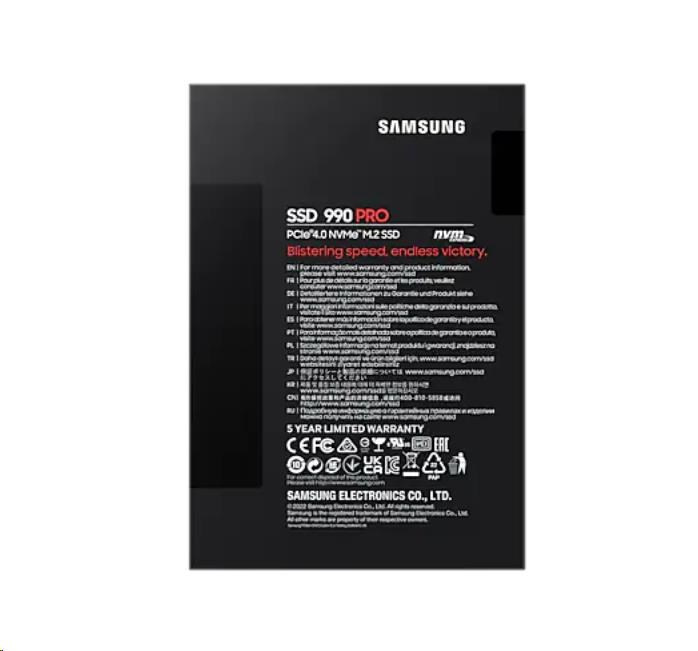 990 PRO prináša rýchlosti, ktoré budete milovať. V porovnaní s 980 PRO dosahuje 40% nárast v sekvenčnom čítaní a 55% v sekvenčnom zápise. Výsledkom toho sú vysoké hodnoty 1550K a 1400K IOPS či 7450 a 6900 MB/s v rámci sekvenčného čítania a zápisu, čo sa blíži maximálnym teoretickým rýchlostiam samotného rozhrania PCIe 4.0. Oblúbené herné tituly, výsledky dátovej analýzy, editované videá aj 3D modely budú načítané skôr, než povieš SSD. *Výkon sekvenčného a náhodného zápisu bol meraný s aktivovanou technológiou Intelligent TurboWrite. Funguje iba v rámci určitej veľkosti prenosu dát. Výkon sa môže líšiť v závislosti od použitého firmvéru SSD, hardvéru, konfigurácie systému a pôsobenia ďalších faktorov. Podrobné informácie vám poskytne miestne servisné stredisko. *Konfigurácia testovacieho systému: 8-jadrový procesor AMD Ryzen 7 5800X na frekvencii 3,8 GHz, DDR4 3600 MHz 16 GB × 2 (PC4-25600 OC), OS-Windows 10 Pro 64-bit, Čipset ASRock-X5. *Ak chcete maximalizovať výkon 990 PRO, overte si na webovej stránke výrobcov Intel či AMD, či váš systém podporuje rozhranie PCIe 4.0. *4TB varianta bude dostupná v priebehu roka 2023.