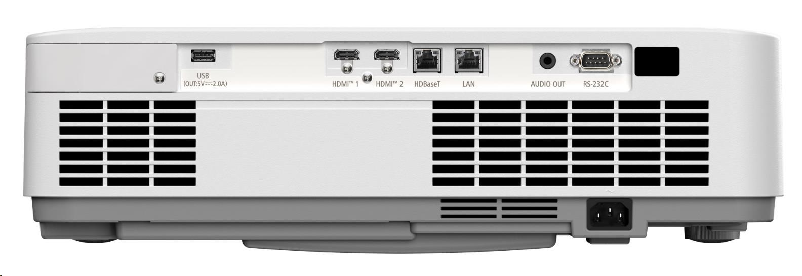Projekční technologie 3LCD Technology Nativní rozlišení 1920 x 1200 (WUXGA)Aspect Ratio 16:10 Kontrastní poměr 3000000:1 Jas 6200 Lm normal / 6500 Lm centre / 5500 Lm tichý mód; v souladu s normou ISE21118-2020 Lampa Laserový světelný zdroj Životnost světelného zdroje [h] 20000 1 Objektiv F= 1,6–2, f= 15,3–24,6 mm Posun čočky H:±20, V:+44,-0 Korekce lichoběžníkového zkreslení +/- 30° manuálně horizontální / +/- 30° manuálně vertikální Projekční faktor 1,08 – 1,76 : 1 Projekční vzdálenost [m] 0,8 – 12,9 Velikost obrazovky (diagonální) [cm] / [palce] Maximum: 762 / 300"; Minimum: 76.2 / 30" Zoom Manual; x1,6 Nastavení zaostření Manual Podporované rozlišení 1080i/60;1080p/60;1280 x 800 (60);1920 x 1200 (60);3840 x 2160 (30) - CONNECTIVITY
