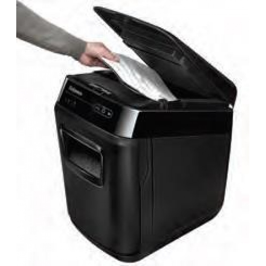 Skartácia nebola nikdy jednoduchšia. Nová revolučná značka Fellowes vás o tom presvedčí. Stačí ho naložiť, zapnúť a vyraziť. Táto automatická skartovačka vám umožní venovať sa užitočnejším kancelárskym činnostiam, než je opakované státie pri bežnej skartovačke. Zariadenie dokáže skartovať až 200 listov 70g papiera v priečnom reze 4 × 38 mm na jeden pracovný cyklus s automatickým podávaním. Skartovač je vybavený vstupným otvorom na ručné podávanie až 10 listov papiera. Výkonný rezací mechanizmus spracováva zošívané papiere (až 20 zošívaných listov 70g papiera) počas automatického podávania. Kreditné karty, CD/DVD sú k dispozícii aj na manuálne podanie.