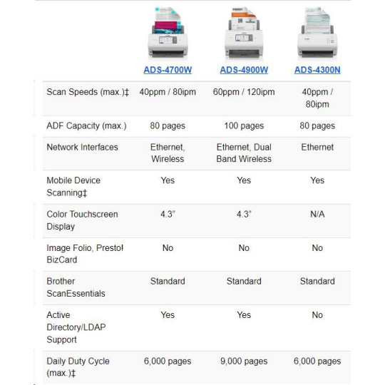 Skener BROTHER ADS-4300N DUALSKEN A4 40 str./80 duálny 600x600 60ADF USB LAN