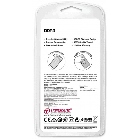 SODIMM DDR3 2GB 1600MHz TRANSCEND 1Rx8 CL11
