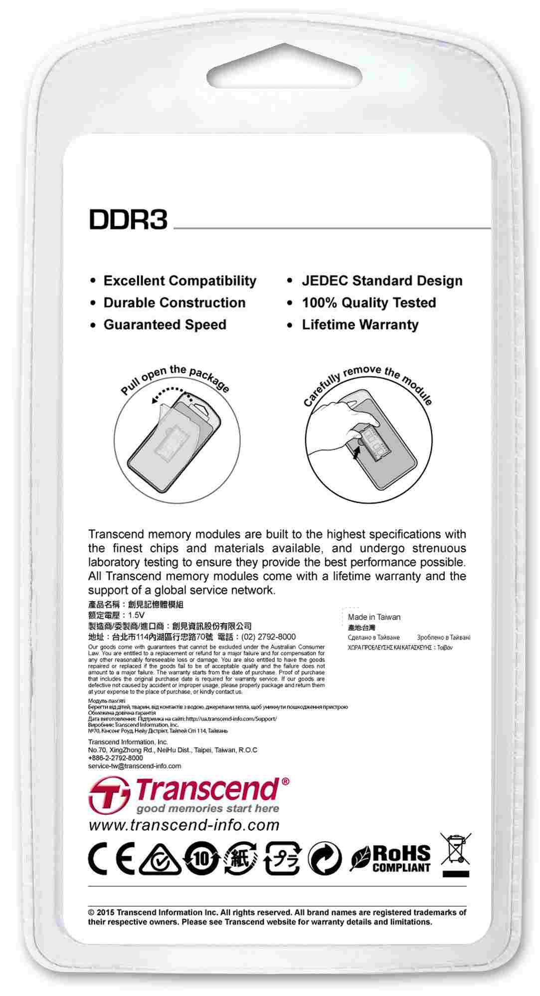 SODIMM DDR3 2GB 1600MHz TRANSCEND 1Rx8 CL11