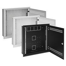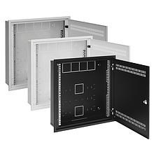 Rozvádzač SOHO LC-18 na stenu s lištami 2U, 4U a 11U, 550x550 čierna RAL9005 s rámčekom na zazdení