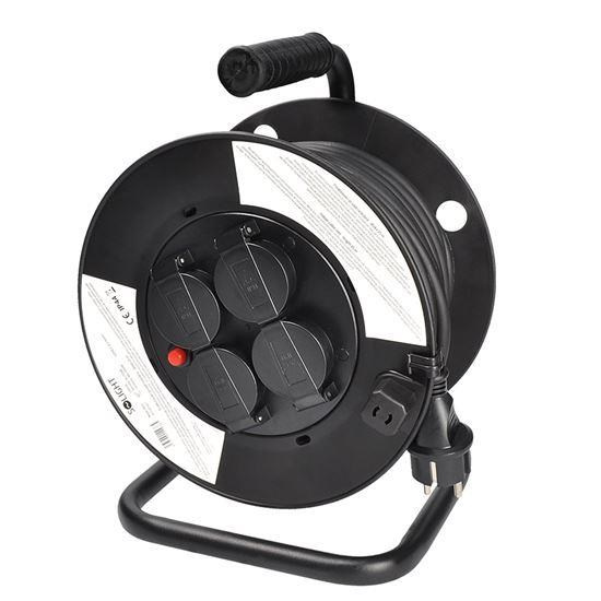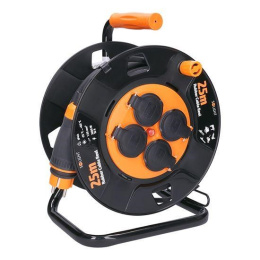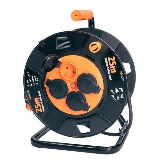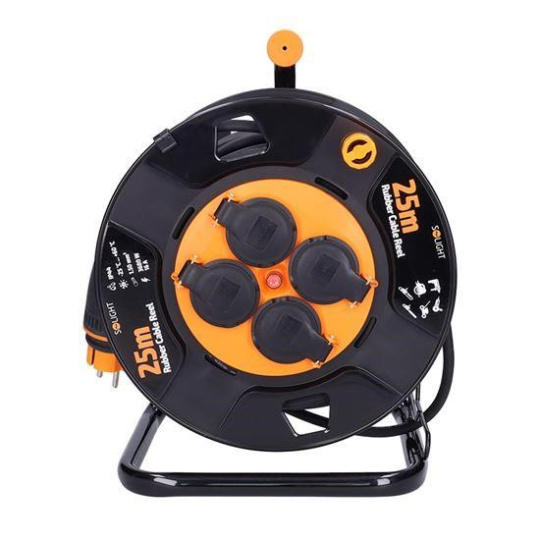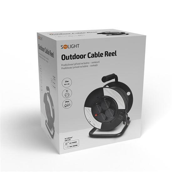 Solight prodlužovací přívod na bubnu, venkovní, 4 zásuvky, černý, 25m