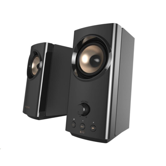 Bezdrôtové rozhranie Bluetooth® 5.0 Slúchadlá/náhlavná súprava Mikrofón 3,5 mm vstup AUX-in Už vás nebaví neustále pripájať a odpájať náhlavnú súpravu z reproduktorov stolného počítača a striedať prehrávanie zvuku z reproduktorov a náhlavnej súpravy? So zariadením Creative T60 už nikdy nič podobné nezažijete! Pomocou tlačidla pohodlne umiestneného na prednej strane reproduktora môžete okamžite prepínať medzi prehrávaním zvuku zo zariadenia Creative T60 alebo zo slúchadiel. A to nie je všetko! Na pravom reproduktore nájdete gombík na nastavenie hlasitosti, tlačidlá Clear Dialog a Surround na aktiváciu zvukových technológií stlačením tlačidla a tlačidlo napájania na zapnutie reproduktora alebo prepínanie medzi zdrojmi zvuku. Reproduktorový systém Creative T60 je dokonalý stolný reproduktor 2.0 do vašej izby. Čistý a elegantný vzhľad, ktorý ladí s monitorom a zaberá väčšinu drahocenného priestoru na stole. V kombinácii so všetkými akustickými funkciami a možnosťami pripojenia umožňuje tento reproduktorový systém Creative T60 jednoducho a bezproblémovo vylepšiť predvolený zvuk vášho stolného počítača alebo notebooku. Rozmery Dĺžka kábla Hmotnosť Prevádzková teplota Výstupný výkon Meniče Frekvenčný rozsah Konfigurácia systému Odstup signálu od šumu Pracovná frekvencia Bluetooth Prevádzkový dosah zariadenia Bluetooth Verzia Bluetooth® Profil Bluetooth Podporované kodeky Typ konektora Farba Verzia