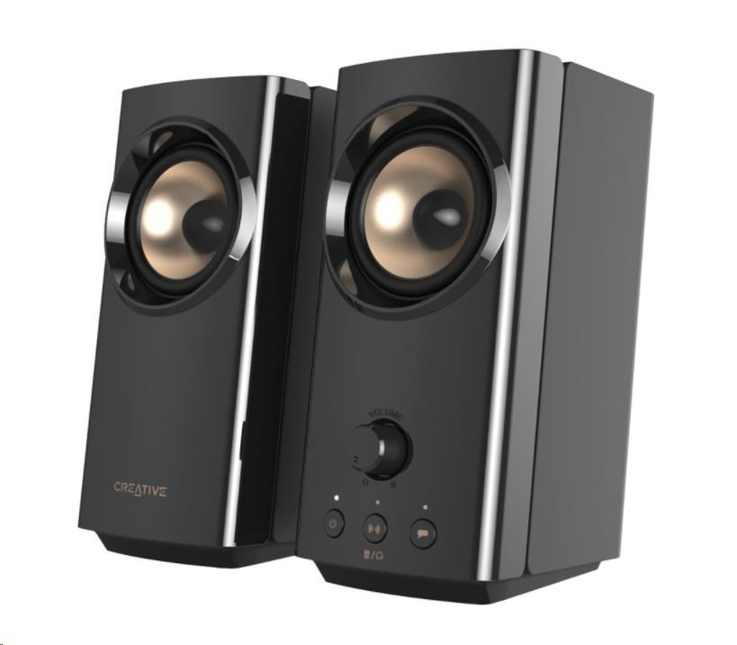 Kompaktné stolové reproduktory Hi-Fi 2.0 s funkciou Clear Dialog a Surround od spoločnosti Sound Blaster pre počítače a notebooky