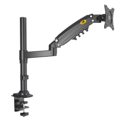 Stolný kancelársky držiak na monitor NB H80B Stolný držiak na monitory 17-27", plne nastaviteľný, TOP kvalita a dizajn, otáčanie do strán, naklápanie, vysúvanie, PIVOT, VESA 75/100, nosnosť 9kg Špičkový stolný držiak s uchytením na okraj alebo do priestoru stola. VESA štandard 75x75 a 100x100 pre uchytenie monitorov s uhlopriečkou 17-27". Držiak umožňuje úplnú nastaviteľnosť polohy monitoru: otáčanie do strán, duálne výškové polohovanie, naklápanie, vzdialenosť od uchytenia a rotáciu monitoru. Rameno držiaka je osadené plynovým piestom s nastaviteľnou tuhosťou 2-9kg, výškové polohovanie je teda extrémne jednoduché a pohodlné. Farebné prevedenie čierne, záruka 3 roky. Stolný držiak monitoru na okraj stola alebo do priestoru stolovej dosky, nosnosť 9kg, VESA 75x75 a 100x100, úplné 3D nastavenie polohy monitora, profesionálna kvalita - NB H80B Technické údaje: zaťaženie: minimálne 2kg, maximálne 9kg na monitory s uhlopriečkou 17" až 27" VESA štandardy 75x75 a 100x100 duálne výškové polohovanie (ramenom s piestom + objímkou na nosníku) nastavenie výšky od stolu 0-550mm otáčanie do strán +360° / -360° sklápanie +85° / -30° rotácia obrazovky - na šírku alebo na výšku dva typy uchytov na stolovú dosku (na okraj stola alebo do priestoru stolovej dosky) uchytenie na stolovú dosku o priemere 20-75mm systém na usporiadanie káblov farebné prevedenie čierne záruka 3 roky Profesionálny stolový držiak na monitor NB H80B Držiak monitora NB H80B podporuje VESA štandardy: VESA 75x75 VESA 100x100 Profesionálna kvalita, krásny dizajn a extrémna nastaviteľnosť - to všetko za cenu strednej triedy stolových držiakov.
