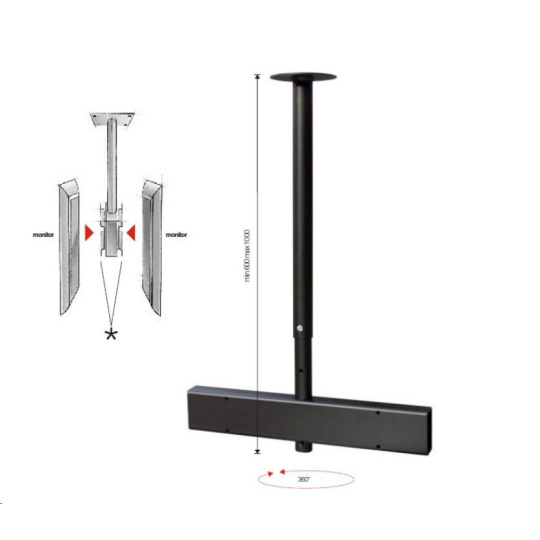 Stropný záves - držiak na TV OMB LIFT NEW 600 FIX Vynikajúci bezpečný stropný držiak na zavesenie TV 37-55", výškovo nastaviteľný Ak hľadáte spoľahlivé stropné zavesenie televízora s možnosťou lacného rozšírenia na 2 televízory, je držiak OMB LIFT NEW 600 FiX pre Vás tým správnym riešením. Držiak je výškovo nastaviteľný, otočný do strán. Celkové možné zaťaženie až 75kg. Výborná spoľahlivá a pevná konštrukcia. Farba čierna. Technické údaje: odporúčaná veľkosť obrazovky 37" - 55" podporuje VESA štandardy 100x100 až 600x400 dodanie vrátane 1ks držiaku na obrazovky možnosť dokúpenia 2. držiaku - zavesenie 2 obrazoviek chrbtom k sebe nosnosť 75kg dĺžkové nastavenie 640 - 1040mm otočný o 360° ľahké nastavenie materiál oceľ farba čierna záruka 5 rokov Stropný držiak OMB Lift New 600 podporuje VESA štandardy: VESA 100x100 VESA 200x100 a 100x200 VESA 200x200 VESA 300x200 a 200x300 VESA 300x300 VESA 400x200 a 200x400 VESA 400x300 a 300x400 VESA 400x400 VESA 600x400