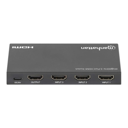 Switches between three HDMI audio/video source signals on a single display Resolutions up to Ultra-High-Definition (UHD) 4K@60Hz (3840×2160) Automatically switches to a newly turned on source, with the option for manual switching via IR remote control or the push of a button on the HDMI switch