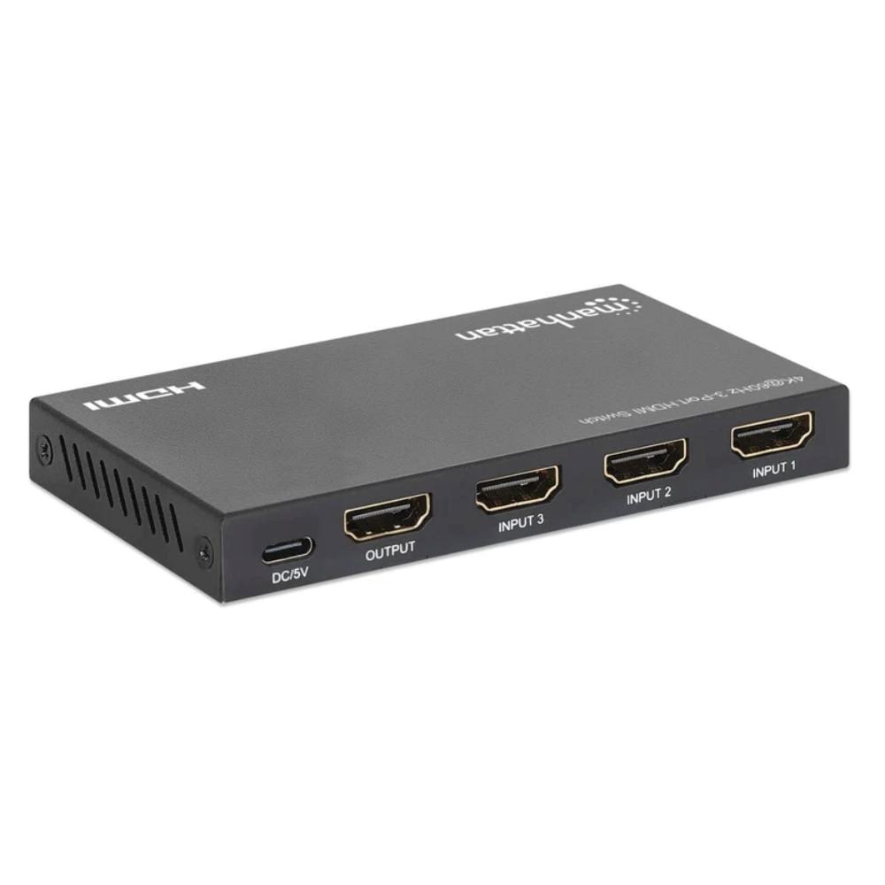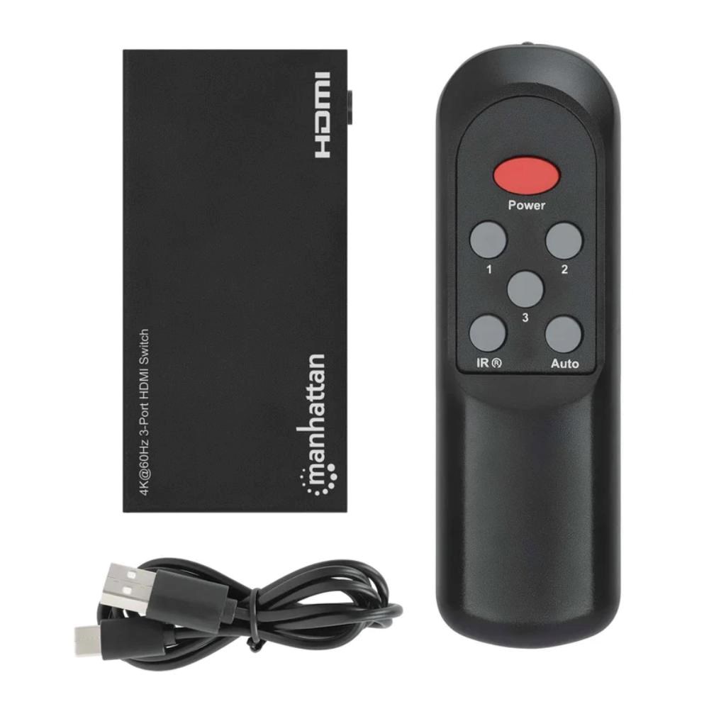 Switches between three HDMI audio/video source signals on a single display Resolutions up to Ultra-High-Definition (UHD) 4K@60Hz (3840×2160) Automatically switches to a newly turned on source, with the option for manual switching via IR remote control or the push of a button on the HDMI switch