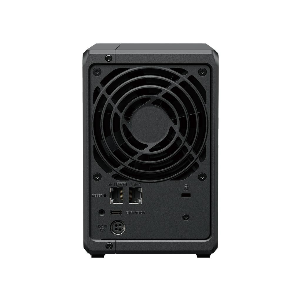 DS725+ ponúka zabudované 2.5GbE pripojenie a podporuje ako SATA SSD, tak HDD v interných pozíciách 2.5"/3.5", rovnako ako M.2 NVMe disky cez M.2 sloty na použitie ako cache.