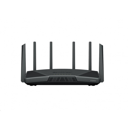 trojpásmový router RT6600ax je založený na novom štandarde Wi-Fi 6 a ponúka prenosovú rýchlosť až 6,6 Gb/s v kombinovanej bezdrôtovej prevádzke. Jeho tri rádiá pracujú v spojení s konfigurovateľným 2,5GbE WAN/LAN portom, aby sa zabezpečila maximálna rýchlosť pripojenia pre jednotlivé zariadenia. Zariadenie RT6600ax je poháňané naším neustále sa vyvíjajúcim operačným systémom Synology Router Manager a je navrhnuté tak, aby zjednodušilo zabezpečenie a správu siete.
