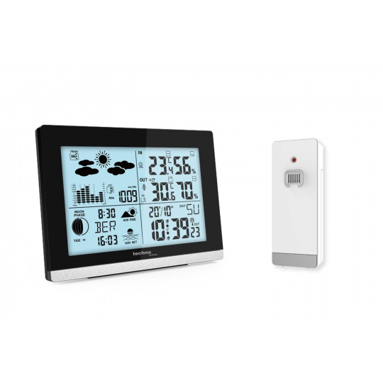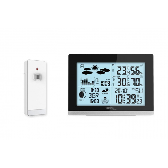 - velikost číslic na displeji – čas 17 mm, datum, zkratka názvu dne 9 mm, vnitřní a vnější teplota a vlhkost 15 mm, barometrický tlak 9 mm, zkratka názvu města 8 mm, čas východu a západu Slunce 7 mm