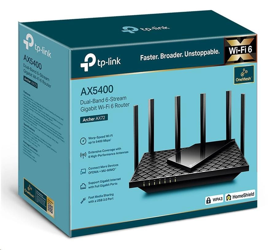 TP-Link Archer AX72 OneMesh/EasyMesh WiFi6 router (AX5400, 2,4GHz/5GHz, 4xGbELAN,1xGbEWAN, 1xUSB3.0)