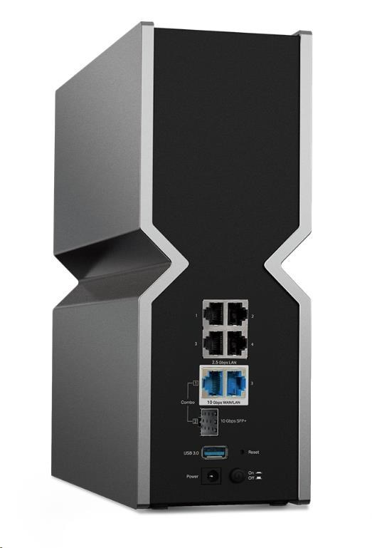- Dva 10G porty: 1× 10 Gb/s kombinovaný ethernetový/optický port WAN/LAN + 1× 10 Gb/s WAN/LAN port + 4× 2.5 Gb/s porty + 1× USB 3.0 port zaisťujú maximálnu flexibilitu a zvýšenú prepustnosť.§