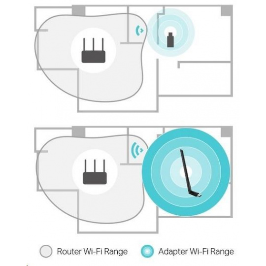 Archer T2U Plus prijíma Wi-Fi signály vo dvoch samostatných pásmach. Podpora 256QAM zvyšuje dátovú rýchlosť v pásme 2,4 GHz zo 150 Mb/s na 200 Mb/s, čo prináša o 33 % rýchlejší výkon. Rýchlosť 200 Mb/s v pásme 2,4 GHz je ideálna na bežné použitie, ako je napríklad surfovanie po webe so staršími zariadeniami. Rýchlosť 433 Mb/s v pásme 5 GHz je ideálna na streaming vo Full HD a hranie hier online bez oneskorenia.