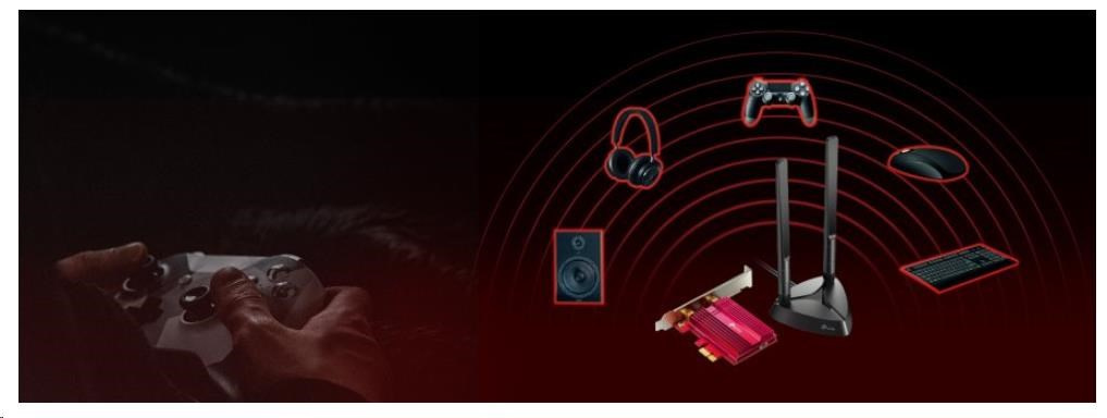 Najnovší štandard Wi-Fi 6 zaručuje extrémne rýchlosti, mimoriadne nízku latenciu a nepretržité pripojenie. S využitím Wi-Fi 6 je Archer TX3000E navrhnutý tak, aby oslobodil vaše hranie od použitia kábla a plne optimalizoval vaše hranie. Objavte chýbajúci komponent vášho herného arzenálu!