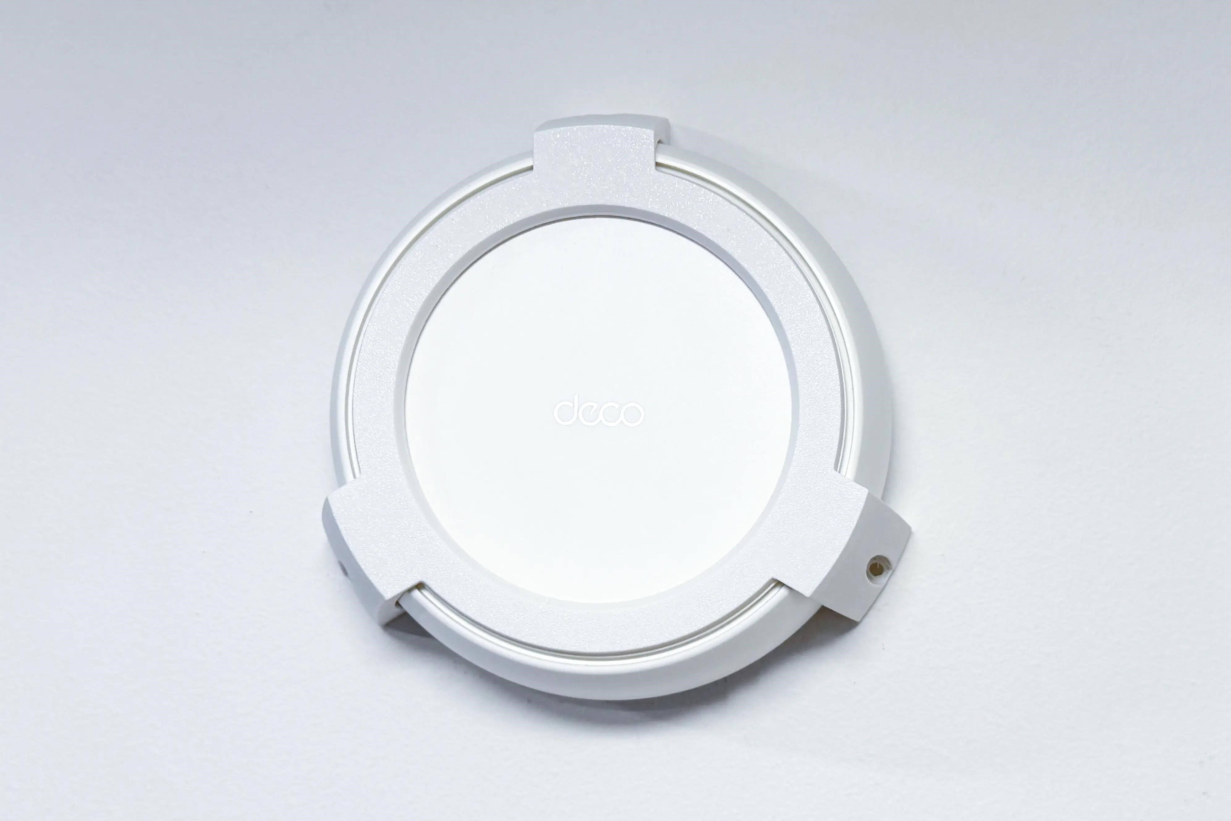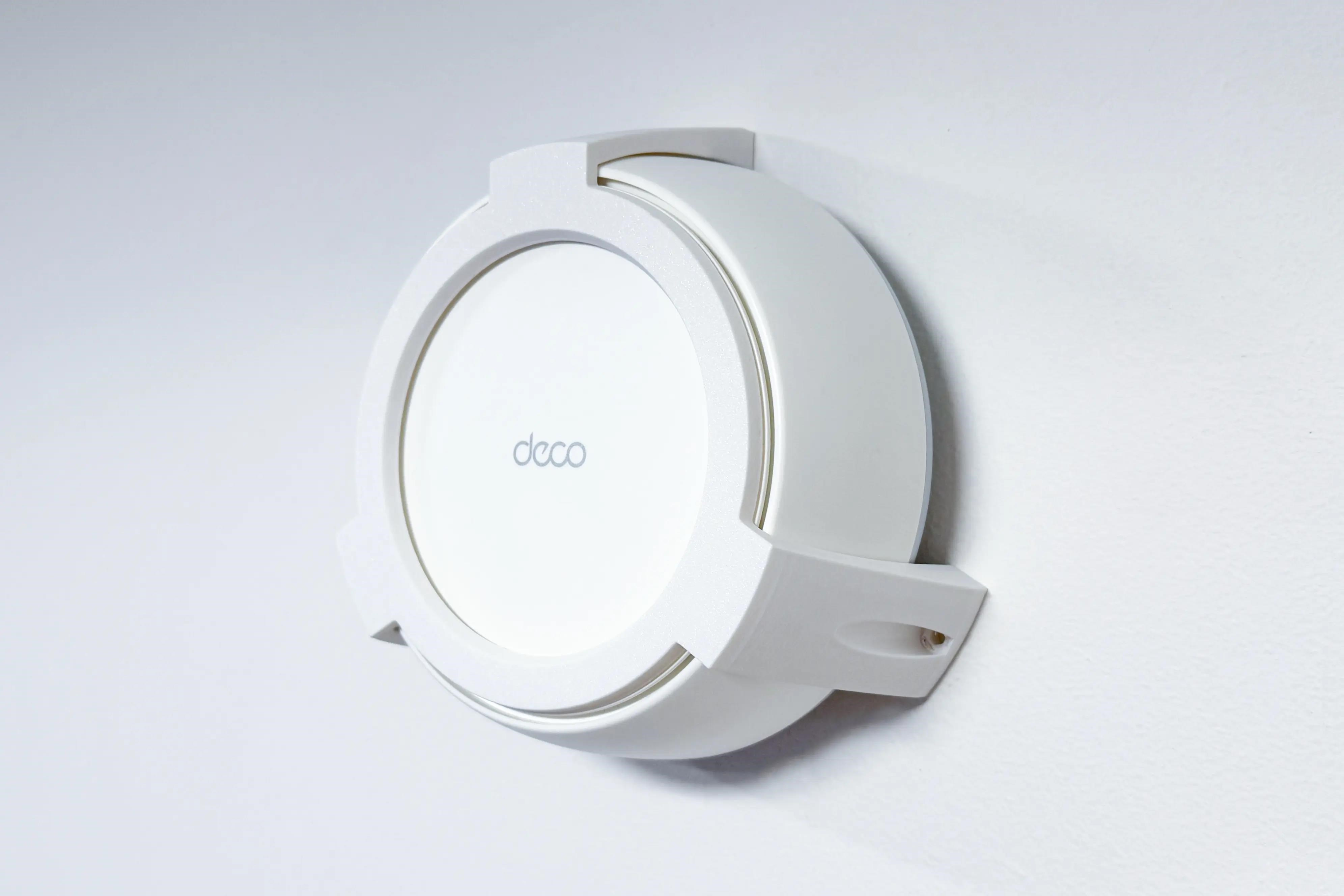 Plastový držiak na stenu a strop pre TP-Link DECO BE25 . Držiak je vyrobený z PETG materiálu na 3D tlačiarni a má bielu farbu.