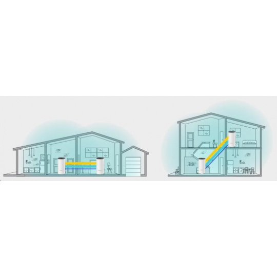 | WiFi dosah | 3-4 izbové domy (3-pack) TP-Link Mesh technológia Voliteľná Ethernet backhaul spolupracuje na prepojení jednotiek Deco a zabezpečuje bezproblémové pokrytie 2× Antény (vnútorné) Množstvo antén tvorí signálové pole na pokrytie väčších smerov a veľkých plôch Beamforming Zameriava bezdrôtový signál smerom k klientom na rozšírenie WiFi dosahu |