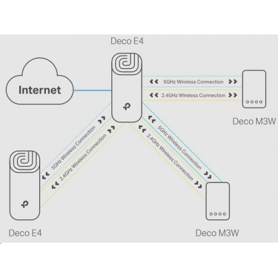 - Deco E4 poskytuje rýchle a stabilné spojenie rýchlosťou až 867 Mb/s a spolupracuje s hlavnými poskytovateľmi internetových služieb (ISP) a modemom.