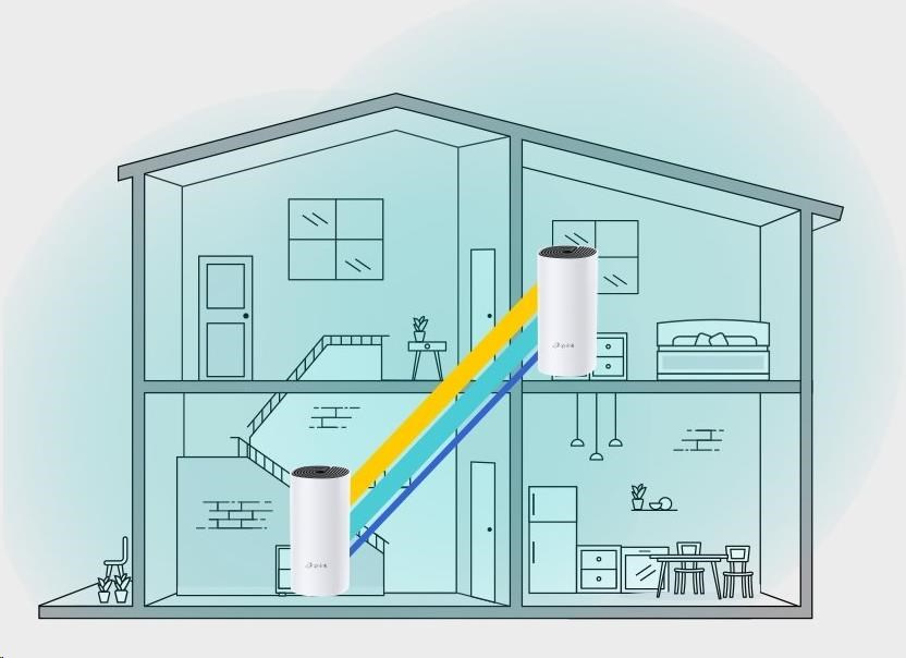 - Vďaka pokročilej Deco mesh technológii jednotky spolupracujú na vytvorení jednotnej siete s jediným názvom. Zariadenia sa automaticky prepínajú medzi jednotkami Deco pri vašom pohybe po dome pre dosiahnutie najvyššej možnej rýchlosti.