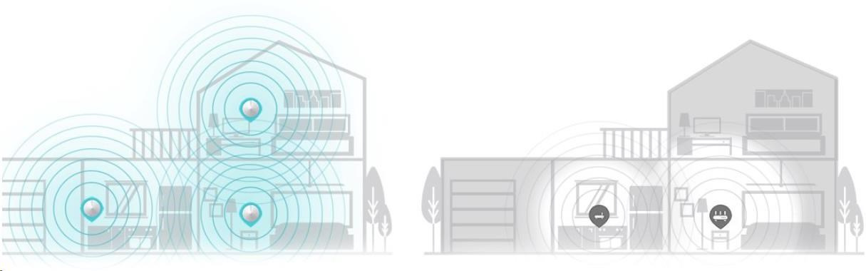 - Vďaka vyspelé technológii Deco Mesh jednotky vzájomne spolupracujú a vytvárajú jednu zjednotenú sieť v celom dome s jedným názvom. Keď budete domom prechádzať, zariadenia sa budú automaticky pripájať vždy k tej jednotke Deco, ktorá im zabezpečí signál s najvyššou možnou rýchlosťou.