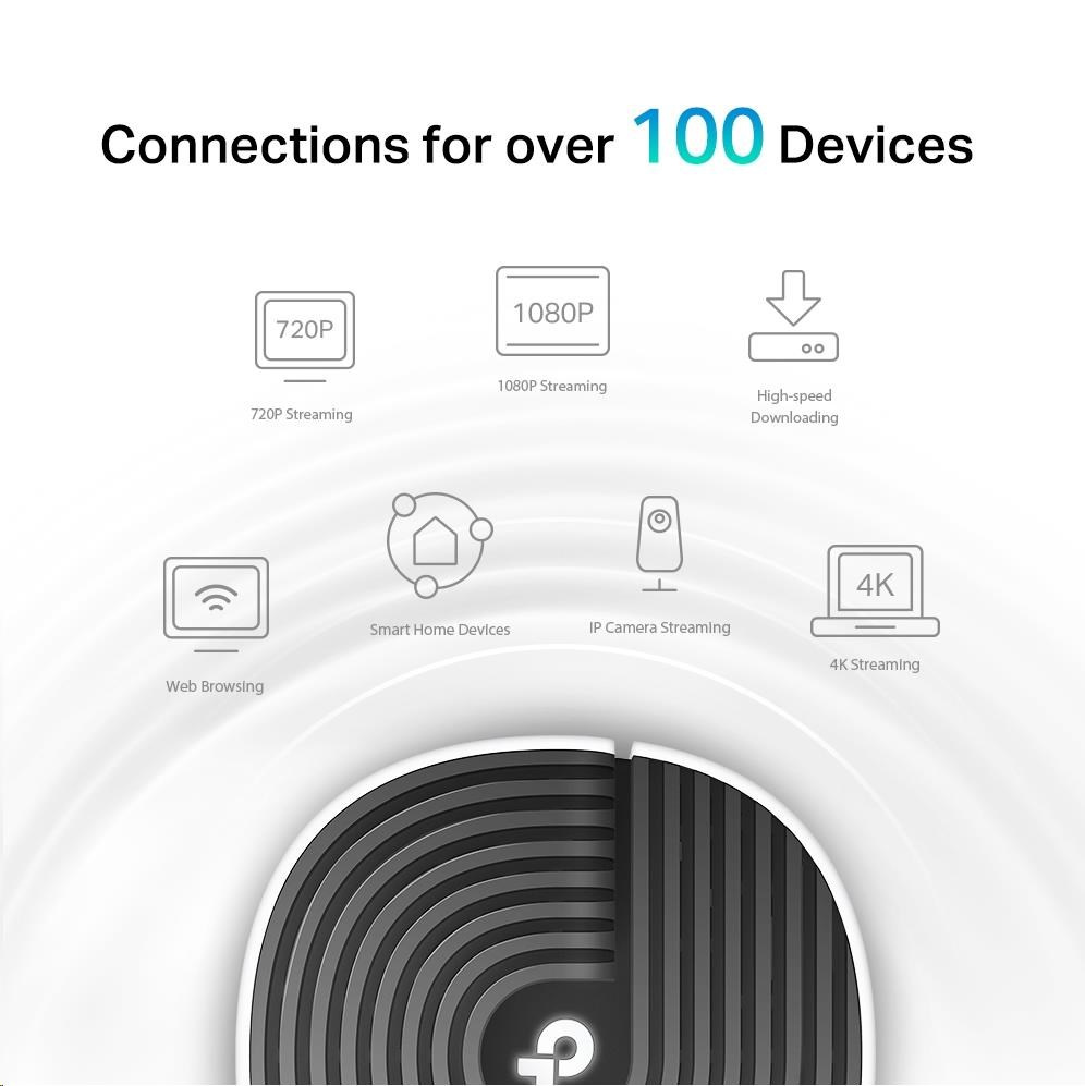 - Pripojenie viac ako 100 zariadení – Deco si poradí s dátovými prenosmi aj v tých najrušnejších sieťach a zabezpečí spoľahlivé pripojenie pre viac ako 100 zariadení.