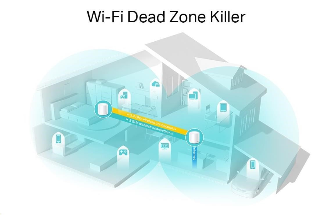 - Jedna zjednotená sieť: Viaceré jednotky tvoria domácu sieť, ktorá automaticky vyberie najlepšie spojenie, keď sa pohybujete po domácnosti.