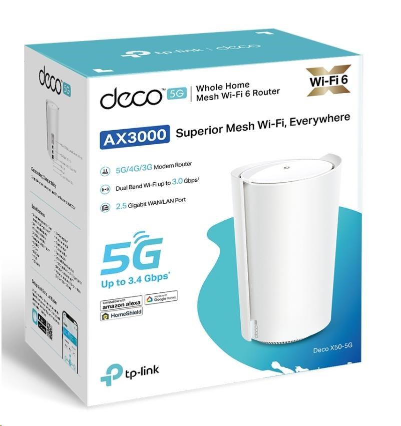 TP-Link Deco X50-5G (1-pack) WiFi6 Mesh (AX3000,2,4GHz/5GHz,1x2,5GbELAN/WAN,2xGbELAN/WAN,4G LTE,5G,+1xnanoSIM)