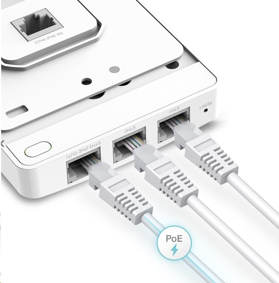 AP disponuje celkom 4 Gigabitovými LAN portami, z čoho prvý port podporu PoE IN a normy 802.3af/at. Posledný port navyše podporuje aj PoE-throughput (PoE-out) a môže tak napájať ďalšie zariadenia ako napríklad VoIP, IP kameru a iné.