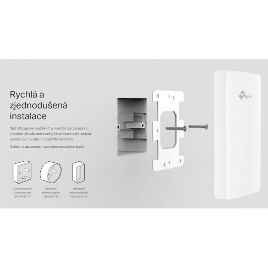 | Obsah balenia | • AX1800 Wall Plate WiFi 6 Access Point EAP615-Wall • Inštalačný návod • Montážne súpravy |