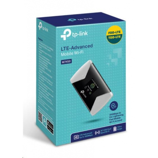 TP-Link M7450 přenosný WiFi 5 router (AC1200,4G LTE Cat6,2,4GHz/5GHz,1xmicroUSB,1xmicroSIM,1xmicroSD)