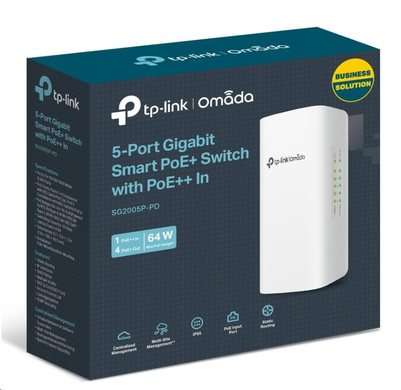 TP-Link OMADA switch SG2005P-PD (1xPoE++in, 4xPoE+out, 64W, fanless)