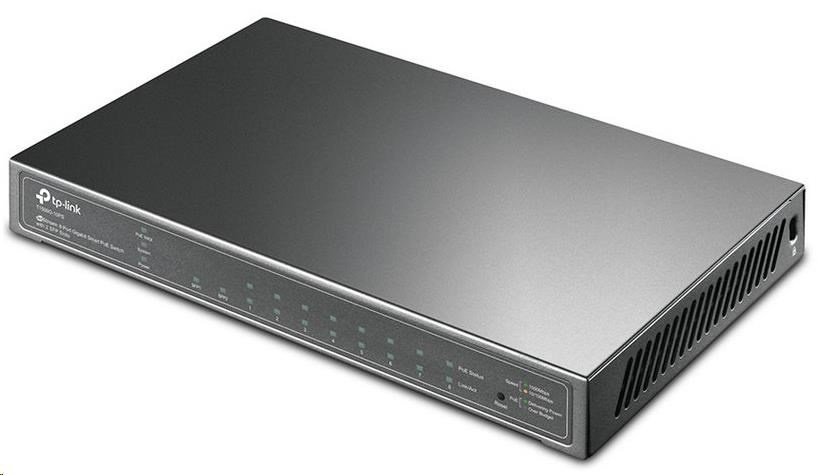 10portový gigabitový inteligentný switch s 8 portami PoE+ a 2 SFP portami