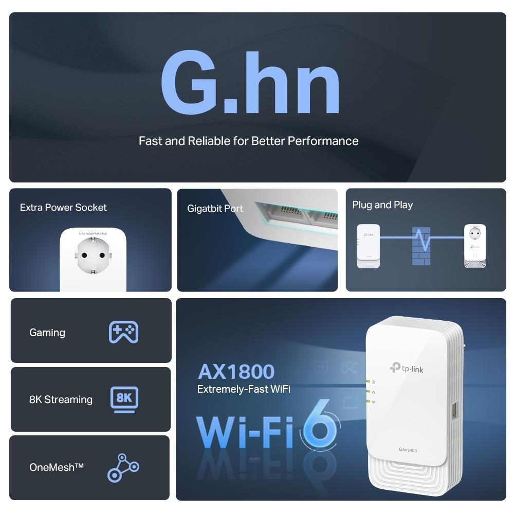 Sada powerline adaptéra a zásuvky G.hn2400 s Wi-Fi 6 AX1800