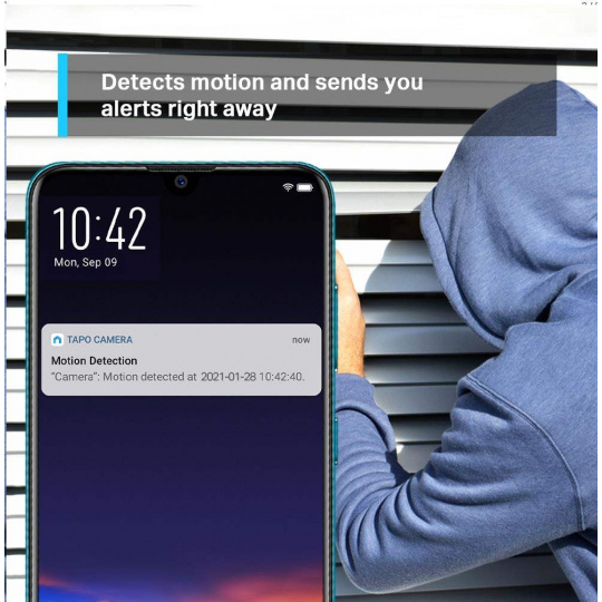 | Obsah balenia | Tapo Pan/Tilt Home Security Wi-Fi kamera Napájací adaptér Rýchly štartovací návod Montážne skrutky Montážna doska Základňa kamery |